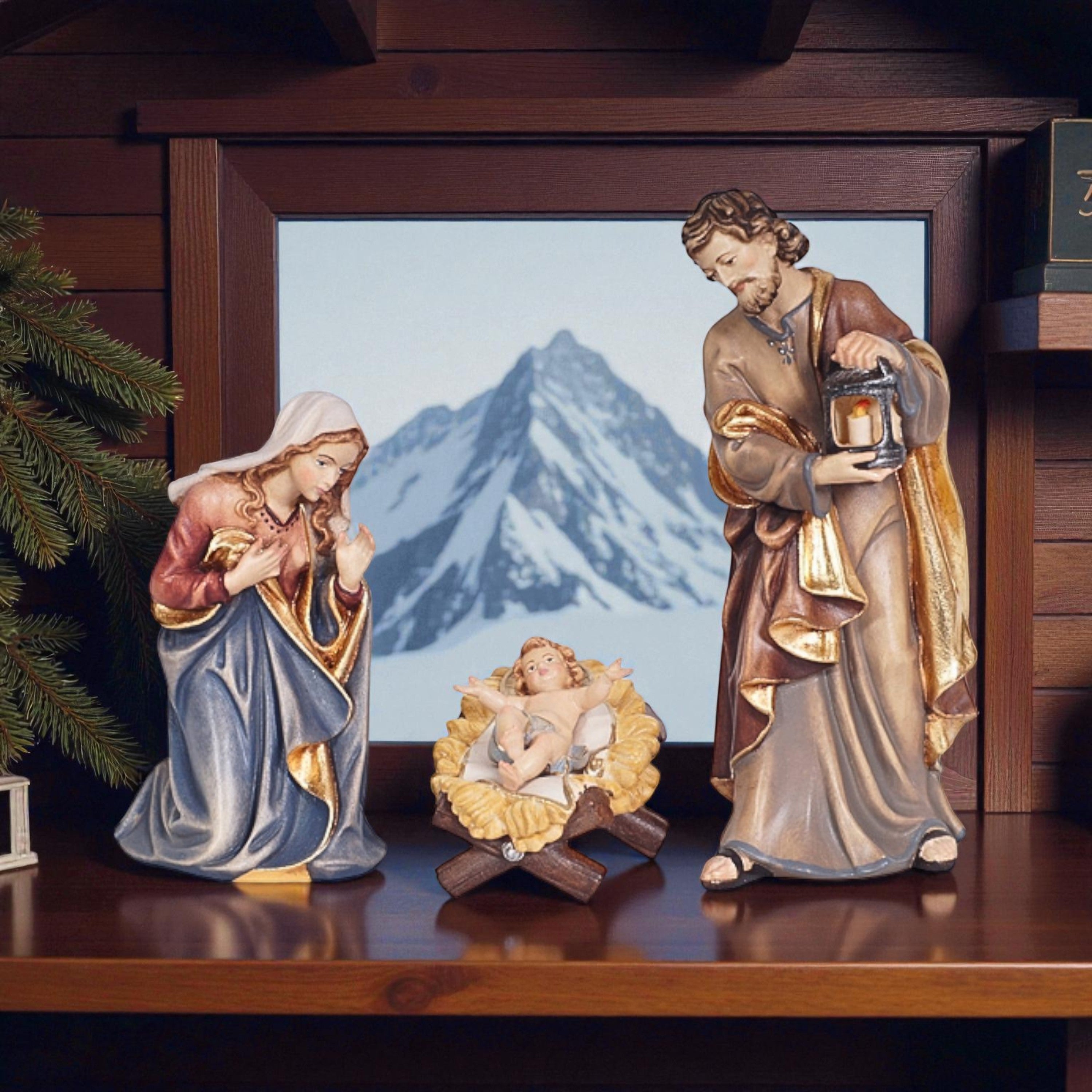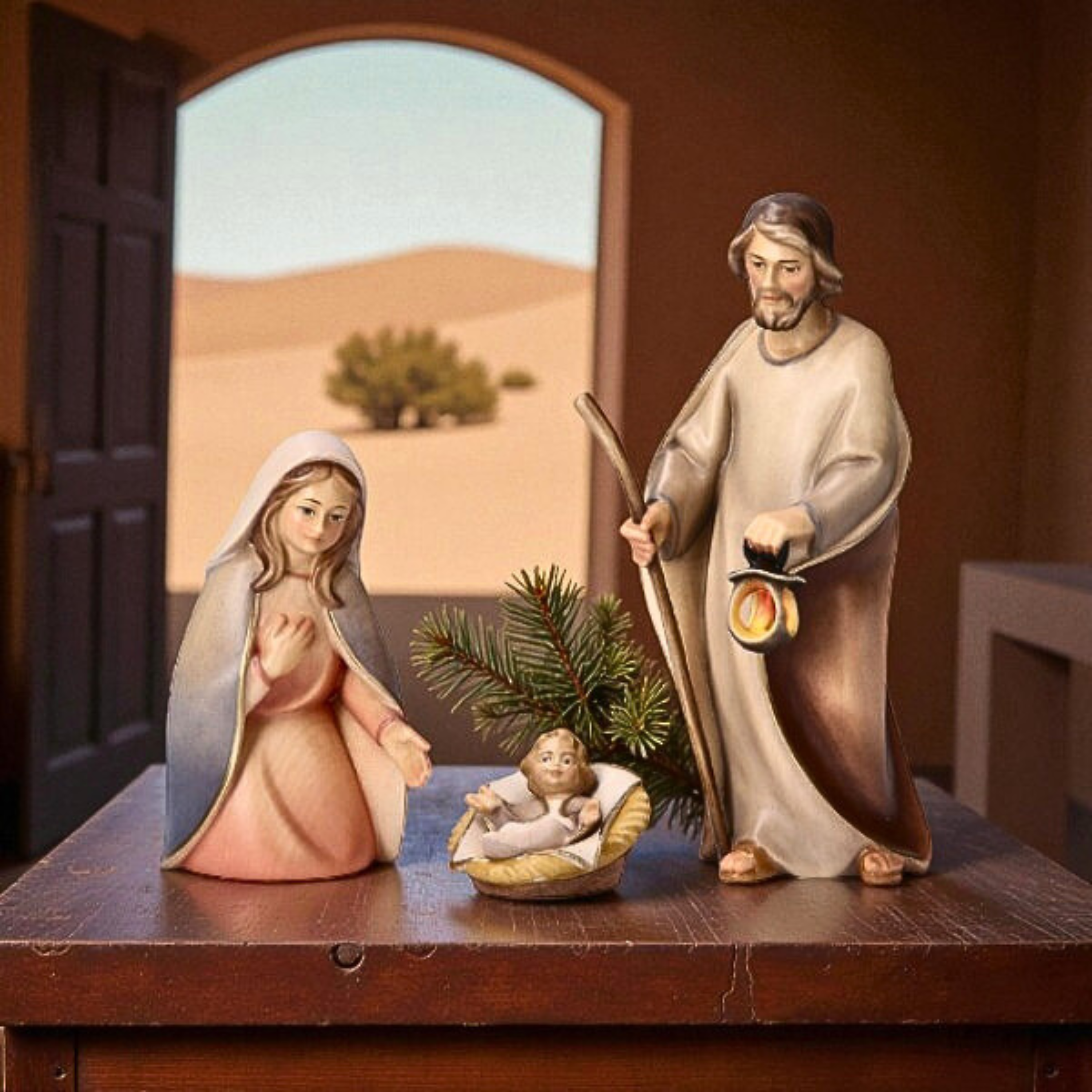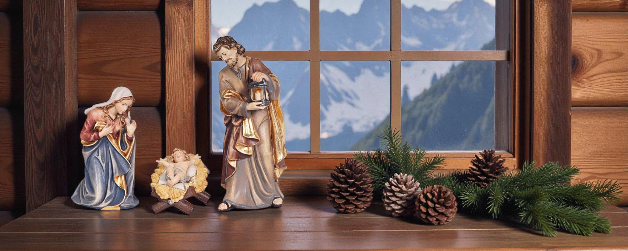 Sammelkrippen, wo man meistens mit der Heiligen Familie zum Sammeln beginnt und die Krippe dann jedes Jahr um die ein oder andere Krippenfigur erweitert. Sie können die Grödner Krippenfiguren aber auch im Set kaufen.