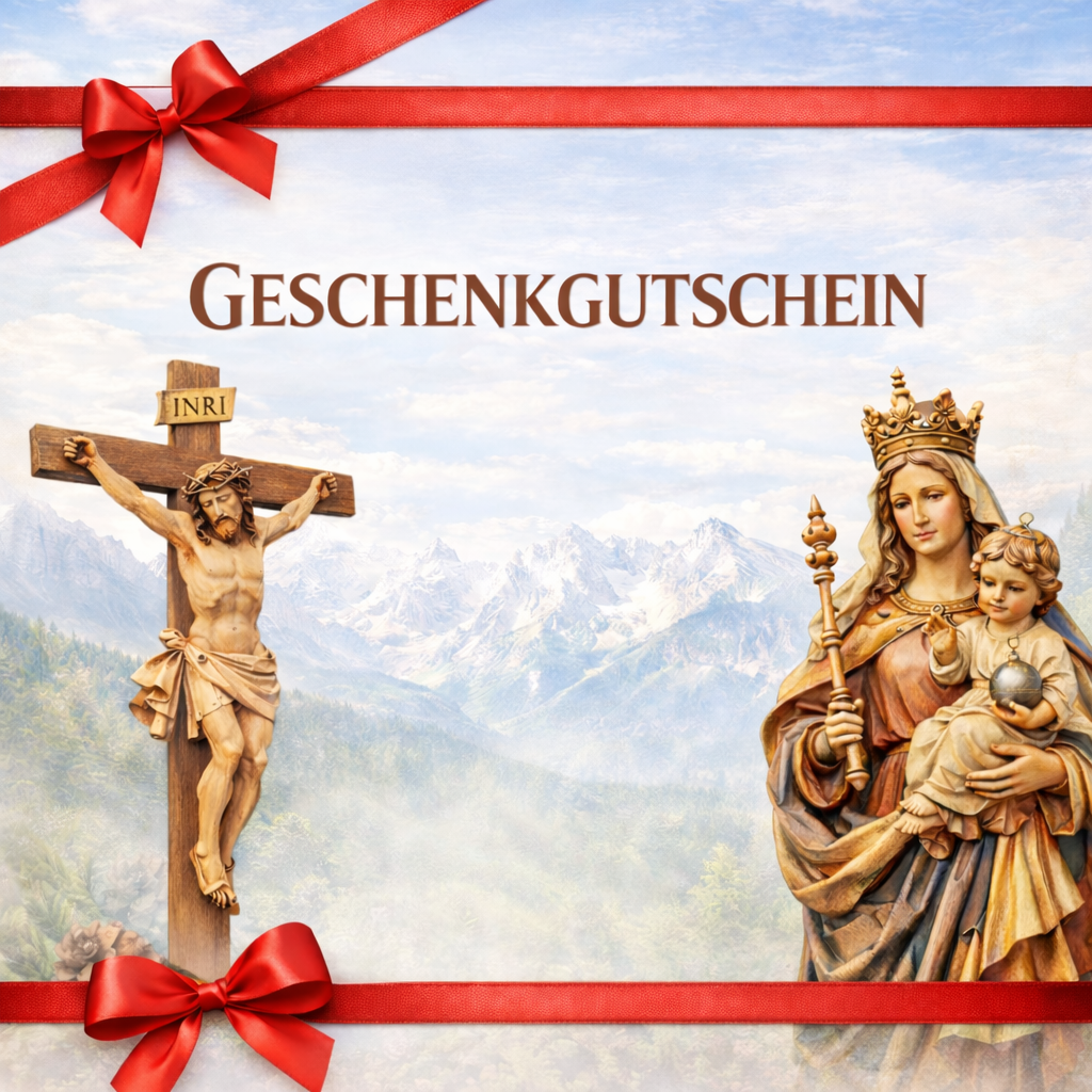 Mit unserem Geschenkgutschein für Grödner Holzschnitzerei schenken Sie echte Handwerkskunst aus den Grödner Dolomiten. Schenken Sie kunstvolle Heiligenfiguren, sakrale Schnitzereien, holzgeschnitzte Krippenfiguren oder dekorative Unikate. Der Geschenkgutschein ist einlösbar für unser gesamtes Grödner Holzschnitzerei Sortiment, sofort geliefert und unbegrenzt gültig.