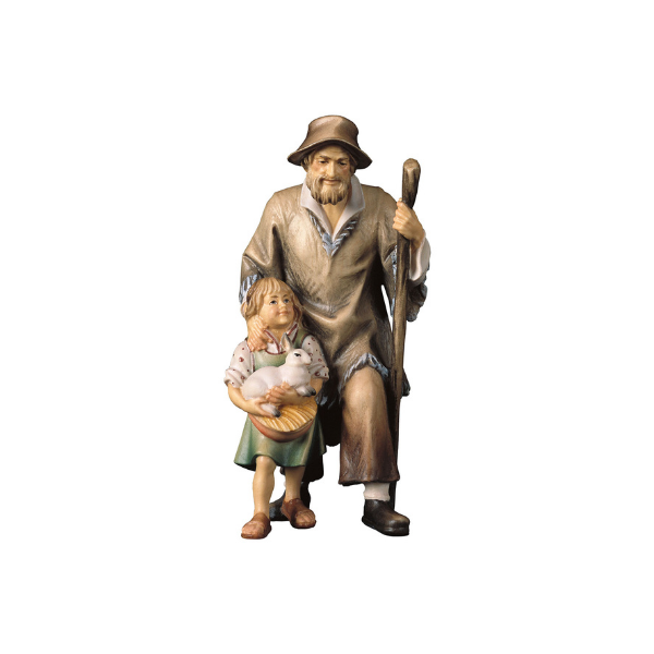 Die Grödner Holzschnitzerei Bauer mit Kind Hirtenkrippe wird nach dem Entwurf eines Bildhauers mit viel Liebe und hohem holzschnitzerei handwerklichen Anteil gefertigt, wodurch jede holzgeschnitzte Figur ein geschnitztes Unikat ist. Durch die Handbemalung der geschnitzten Holzfigur können geringfügige Abweichungen zur Abbildung vorliegen.