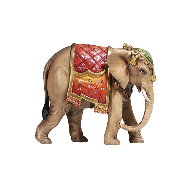Die Grödner Holzschnitzerei Elefant Krippentier wird nach dem Entwurf eines Bildhauers mit viel Liebe und hohem holzschnitzer handwerklichem Anteil gefertigt, wodurch jede holzgeschnitzte Figur ein geschnitztes Unikat ist. Durch die Handbemalung der geschnitzten Holzfigur können geringfügige Abweichungen zur Abbildung vorliegen.