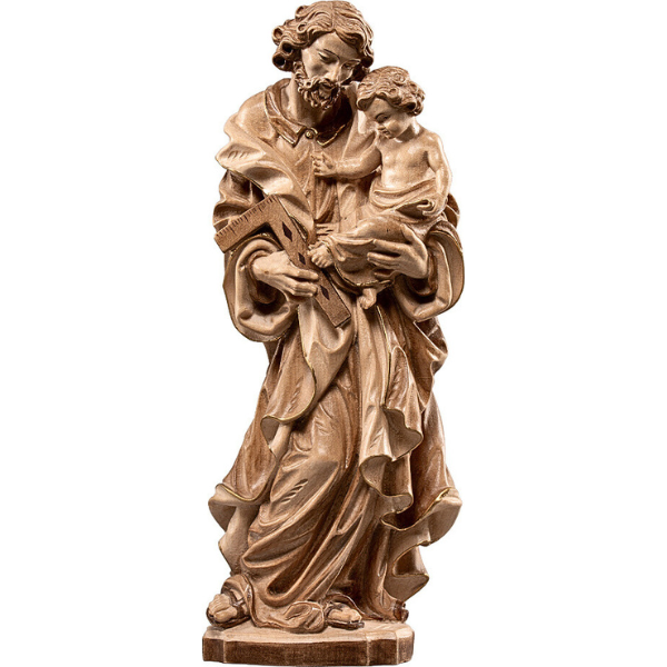 Die Grödner Holzschnitzerei Heiliger Josef mit Kind wird nach dem Entwurf eines Bildhauers mit viel Liebe und hohem holzschnitzer handwerklichem Anteil gefertigt, wodurch jede holzgeschnitzte Figur ein geschnitztes Unikat ist. Durch die Handbemalung der geschnitzten Holzfigur können geringfügige Abweichungen zur Abbildung vorliegen.