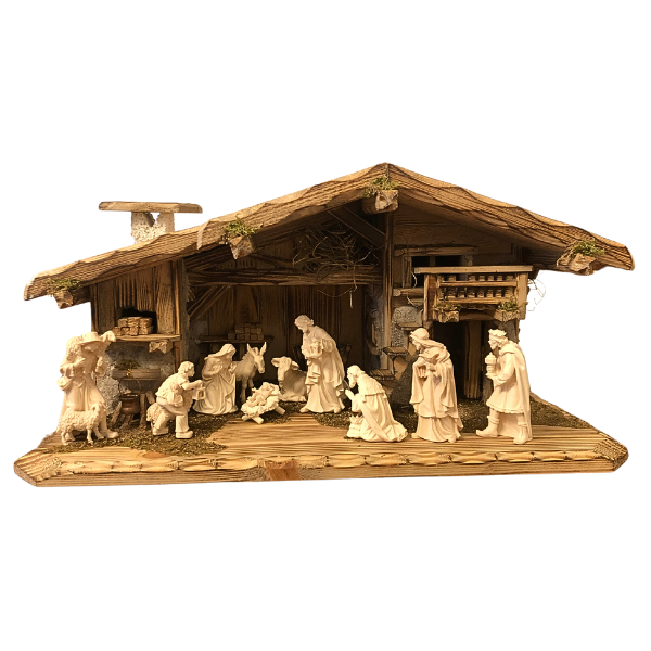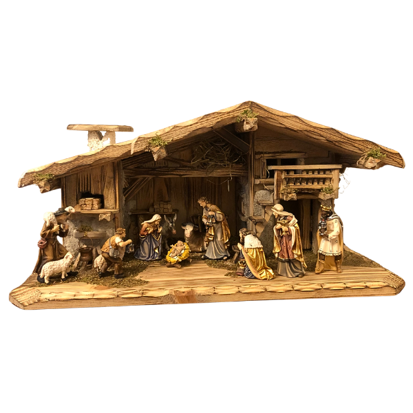 Die Grödner Holzschnitzerei Kostner Krippenset 12 teilig im Stall Villach wird nach dem Entwurf eines Bildhauers mit viel Liebe und hohem holzschnitzerei handwerklichen Anteil gefertigt, wodurch jede holzgeschnitzte Figur ein geschnitztes Unikat ist. Durch die Handbemalung der geschnitzten Holzfigur können geringfügige Abweichungen zur Abbildung vorliegen.