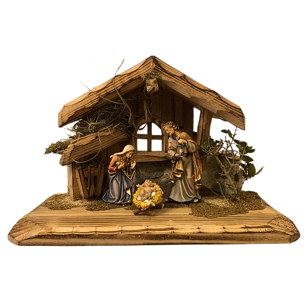 Die Grödner Holzschnitzerei Kostner Krippenset 5 teilig im Stall Gröden wird nach dem Entwurf eines Bildhauers mit viel Liebe und hohem holzschnitzerei handwerklichen Anteil gefertigt, wodurch jede holzgeschnitzte Figur ein geschnitztes Unikat ist. Durch die Handbemalung der geschnitzten Holzfigur können geringfügige Abweichungen zur Abbildung vorliegen.