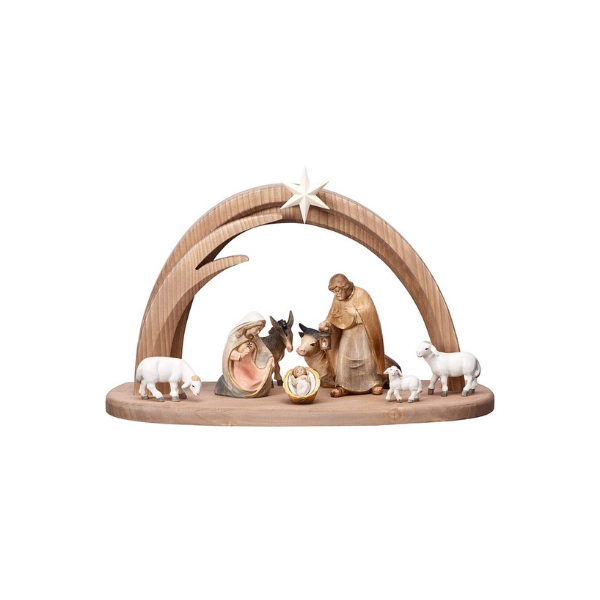 Die Grödner Holzschnitzerei Pema Krippenset 10 teilig im Stall Leonardo wird nach dem Entwurf eines Bildhauers mit viel Liebe und hohem holzschnitzerei handwerklichen Anteil gefertigt, wodurch jede holzgeschnitzte Figur ein geschnitztes Unikat ist. Durch die Handbemalung der geschnitzten Holzfigur können geringfügige Abweichungen zur Abbildung vorliegen.