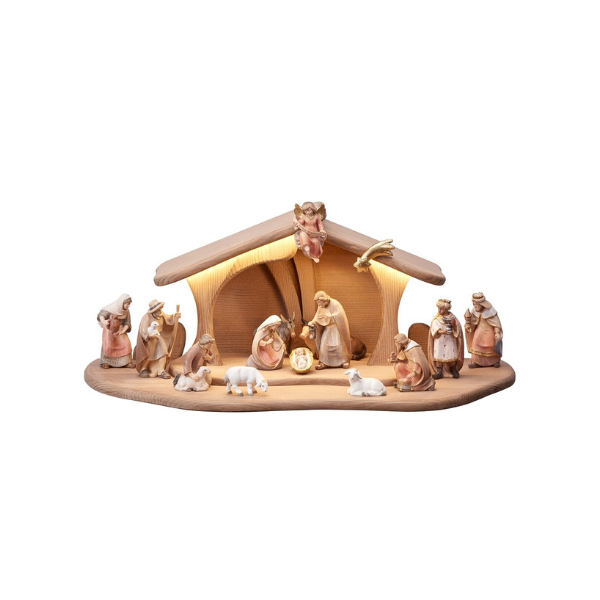 Die Grödner Holzschnitzerei Pema Krippenset 17 teilig im Stall Luce beleuchtet wird nach dem Entwurf eines Bildhauers mit viel Liebe und hohem holzschnitzerei handwerklichen Anteil gefertigt, wodurch jede holzgeschnitzte Figur ein geschnitztes Unikat ist. Durch die Handbemalung der geschnitzten Holzfigur können geringfügige Abweichungen zur Abbildung vorliegen.