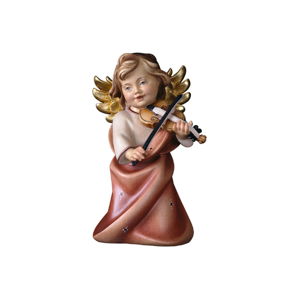 Die Grödner Holzschnitzerei Standengel mit Geige wird nach dem Entwurf eines Bildhauers mit viel Liebe und hohem holzschnitzer handwerklichem Anteil gefertigt, wodurch jede holzgeschnitzte Figur ein geschnitztes Unikat ist. Durch die Handbemalung der geschnitzten Holzfigur können geringfügige Abweichungen zur Abbildung vorliegen.