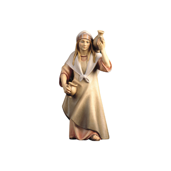 Die Grödner Holzschnitzerei Wasserträgerin Kometkrippe wird nach dem Entwurf eines Bildhauers mit viel Liebe und hohem holzschnitzerei handwerklichen Anteil gefertigt, wodurch jede holzgeschnitzte Figur ein geschnitztes Unikat ist. Durch die Handbemalung der geschnitzten Holzfigur können geringfügige Abweichungen zur Abbildung vorliegen.